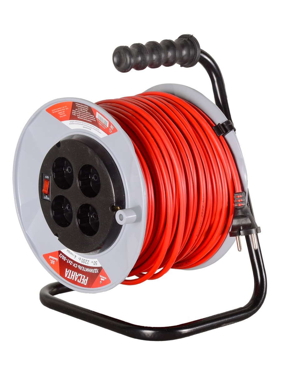 Удлинитель на катушке 4х50м б/з 10А 2200Вт с выкл. СУ-2х1-50/2 61/118/5 Ресанта подает ток для питания электрических приборов на расстояние до 50 метров от бытовой электросети. Используется для подключения садового, строительного, насосного и другого электрооборудования высокой мощности. Блок розеток позволяет запитать до 4 потребителей одновременно.