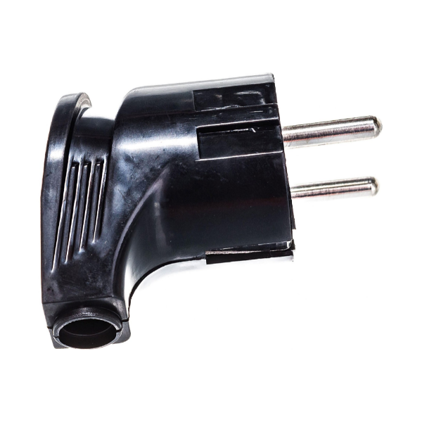 Вилка электрич. с заземл. угл. черн. 16А 250В (еврослот) UNIVersal А0105 – электроустановочный аксессуар, применяемый для подключения к сети бытовых электроприборов. Тип "евро", с заземлением. Вилка разборная, изготовлена из пластмассы, устойчивой к оплавлению, ударопрочная, устойчив к износу.