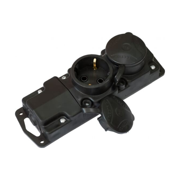 Розетка каучук с/з 2 мест.черная прямая с заглушками 16А 250В IP44 СВЕТОПРИБОР