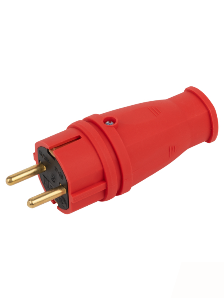 Вилка каучук.электрическая прямая 16А 250В с заземл. красный