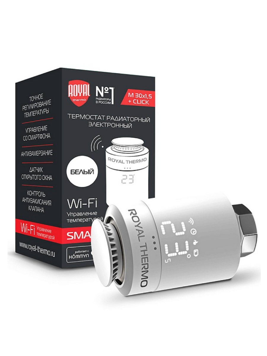Терморегулятор для радиатора Royal Thermo электрон. Smart Heat, белый