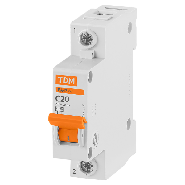 Автоматический выключатель 1Р 20А хар.С ВА 47-63 4,5кА 230/400В TDM