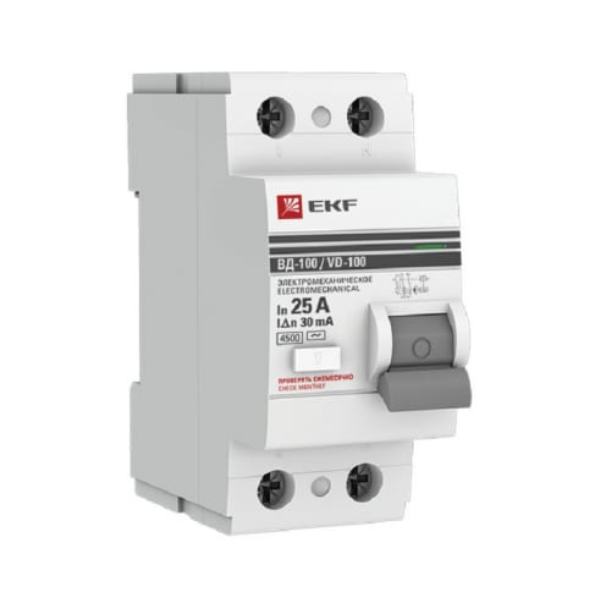 Выключатель дифференциального тока (УЗО) 2п 25А 30мА тип АС ВД-100 elcb-2-25-30-em-pro PROxima EKF является надежным и долговечным в эксплуатации электротехническим устройством, предназначенным для цепей переменного тока. Используется для защиты зданий от возгорания, человека от поражения электрическим током, повреждения оборудования и мн. др. Защищает от токов утечки, коротких замыканий, замыканий на корпус и замыканий на землю.