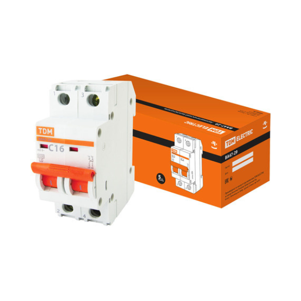 Выключатель автоматический модульный 2п C 16А хар.С ВА 47-29 4,5кА 230/400В TDM