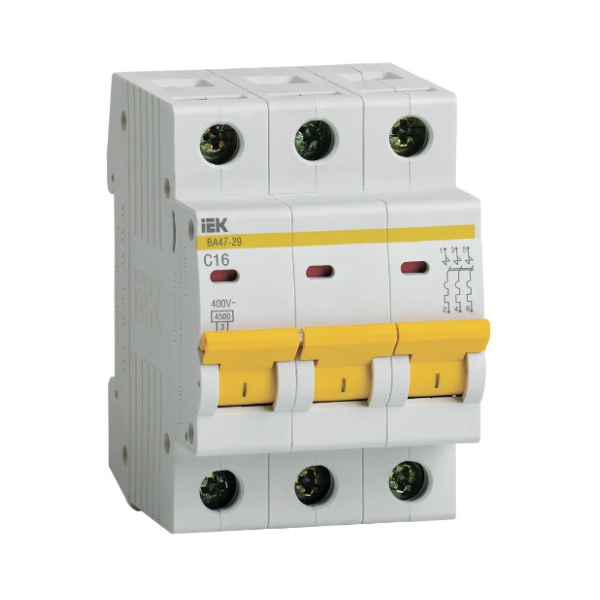 Выключатель автоматический модульный 3п С16А 4.5кА ВА47-29 IEK MVA20-3-016-C