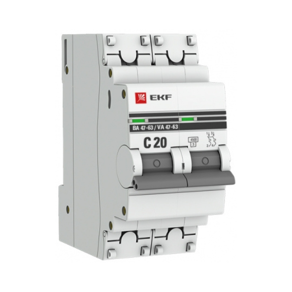 Выключатель автоматический PROxima EKF 2п С20А 4.5кА ВА47-63 mcb4763-2-20C-pro