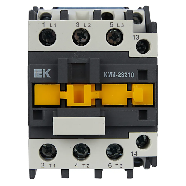 Контактор КМИ-23210 32А 400В/АС3 1НО IEK KKM21-032-400-10 предназначен для пуска, остановки и реверсирования асинхронных электродвигателей с короткозамкнутым ротором на напряжение до 660 В (категория применения АС-3), а также для дистанционного управления цепями освещения, нагревательными цепями и различными малоиндуктивными нагрузками (категория применения АС-1). Все исполнения на ток нагрузки до 40 А имеют одну группу замыкающих или размыкающих дополнительных контактов. Исполнения на ток нагрузки свыше 40 А - две группы (замыкающую и размыкающую).