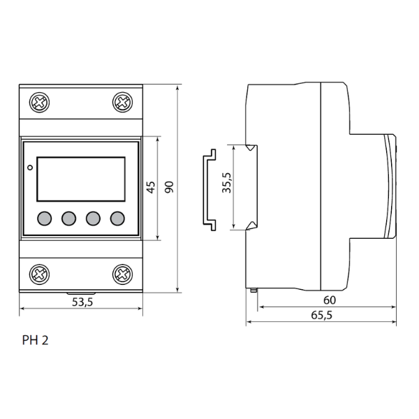 Реле устанавливается на DIN-рейку шириной 35 мм. Реле не имеет регулировок, все параметры предустановленные.