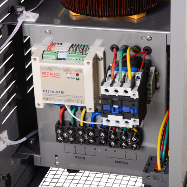 Стабилизатор релейного типа за счет своего принципа работы позволяет моментально реагировать даже на самые значительные и частые изменения напряжения в сети и предотвратить выход оборудования из строя. Номинальная мощность при входящем напряжении 190В составляет 15000Вт. Количество фаз = 3.