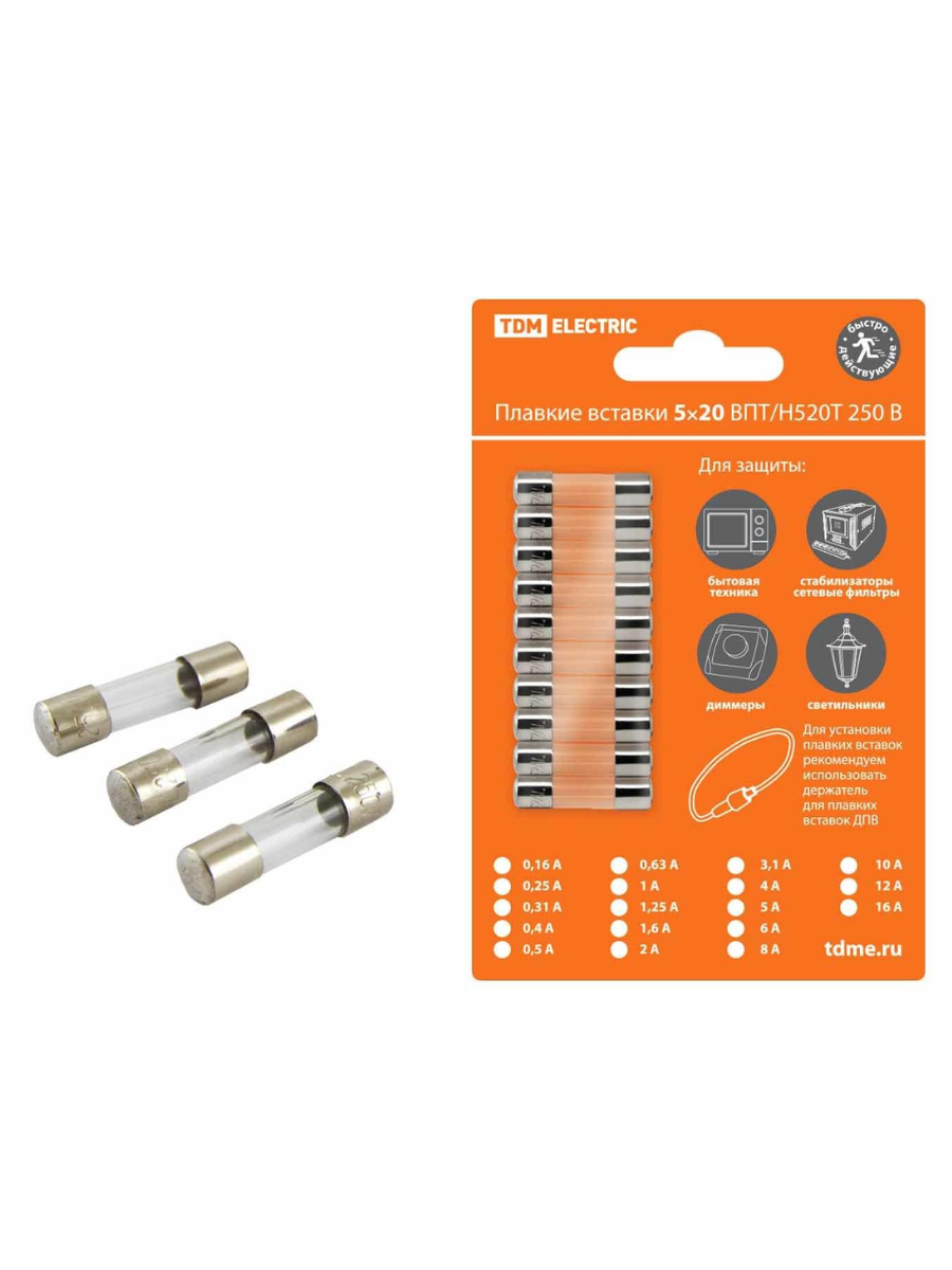 - Плавкие вставки упакованы в блистер со всей необходимой для выбора информацией и штрихкодом EAN-13.