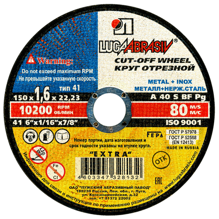 Диск отрезной по металлу 150*1,6*22мм Луга