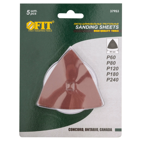 Листы шлифовальные треугольные на тканевой основе 80 мм, набор 5 шт 37953 FIT с липучкой применяются для сухого шлифования различных материалов. Для установки на подошву для шлифовальных листов.