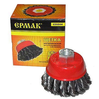 Щетка крацовка "чашка" 65м Ермак применяется в качестве насадки на углошлифовальную машину.