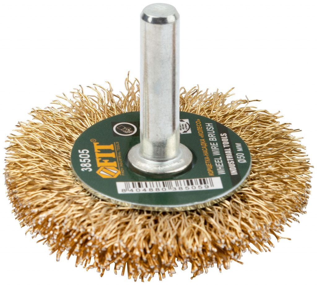 Щетка крацовка колесо, со штифтом, стальная латунированная волнистая проволока 50 мм