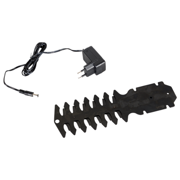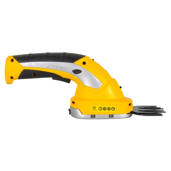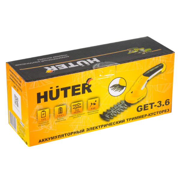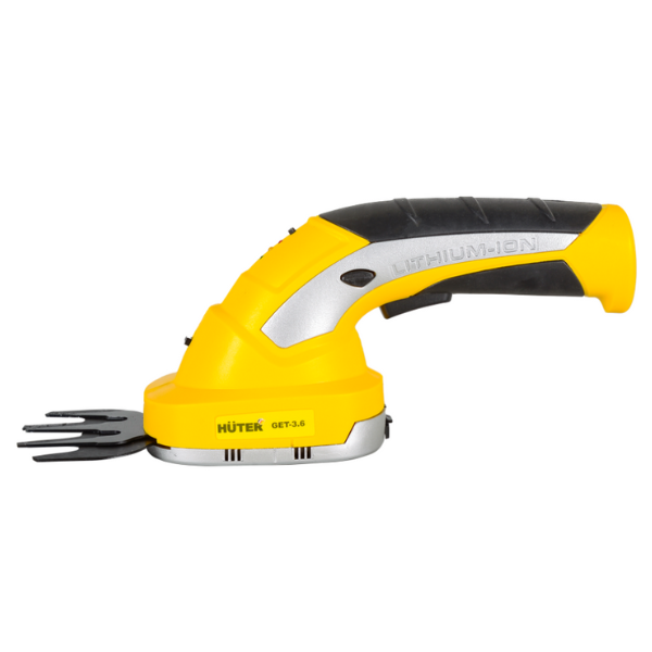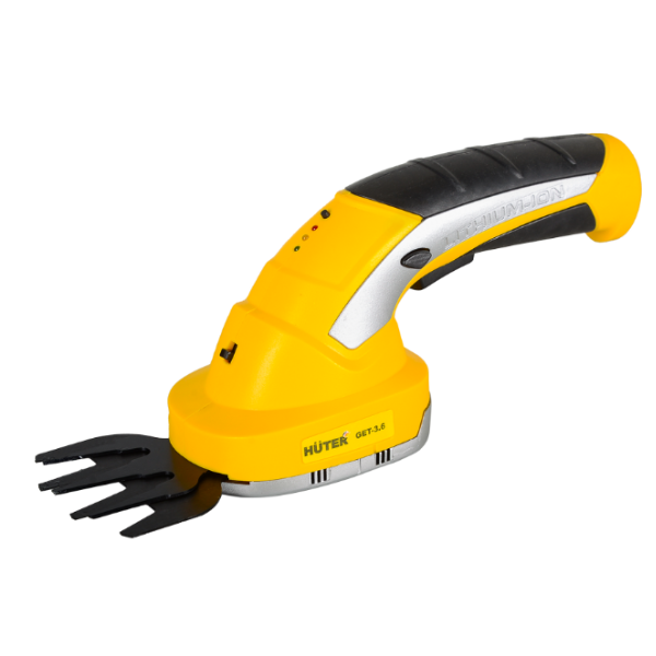 Триммер-кусторез аккумуляторный Huter GET-3.6 70/1/28 применяется для для стрижки и подравнивания кустов и живой изгороди на приусадебном участке. В комплект прибора входит литий-ионный аккумулятор и два ножа (для кустов и травы). Аккумулятор дает возможность заниматься работами в любой точке сада без подзарядки. Каждый из ножей имеет по два лезвия, двигающиеся друг относительно друга. Нож для подрезки кустов двусторонний и позволяет подстригать маятниковыми движениями ветки растений толщиной до 8 мм. Нож для травы рассчитан на прямолинейные движения вдоль газона. Корпус аккумуляторного кустореза выполнен в виде овальной платформы с наклонной эргономичной ручкой. Платформа снабжена крышкой с фиксатором, под которую прочно крепится необходимое для работы лезвие. Рукоятка с резиновыми накладками исключает проскальзывание руки во время работы. Триммер-кусторез обладает небольшим весом - всего 1 кг.
