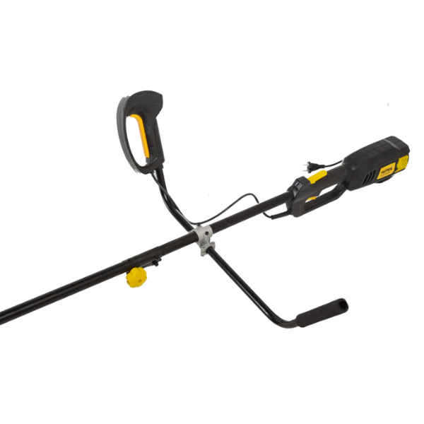 Триммер электрический Huter GET-1500B 70/1/7 применяется для ухода за придомовой территорией или частным хозяйством. Он избавит вас от травы в труднодоступных местах: по периметру заборов, рядом с кустами и деревьями, а так же удалит травянистые заросли или просто подравняет газон. Ширина кошения за проход - 42 см. Компактный за счет разборной штанги и небольшого корпуса электрический триммер не займет много места при хранения. Так же стоит отметить небольшой вес - всего 6,5 кг. Мощность двигателя электротриммера составляет 1500 Вт, этого достаточно для скашивания травы, сухостоя и мелкой древесной поросли. Сохранить оптимальную температуру позволяет наличие воздушного охлаждения. Верхнее расположение двигателя защищает от попадания мелкого мусора и воды при кошении влажной травы.