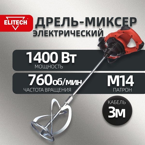 МИКСЕР МС ELITECH 1400 Вт; 72 Нм; 0-540 / 0-7600 об/мин; 590 мм; 120 л; 6,5А; 5.9кг