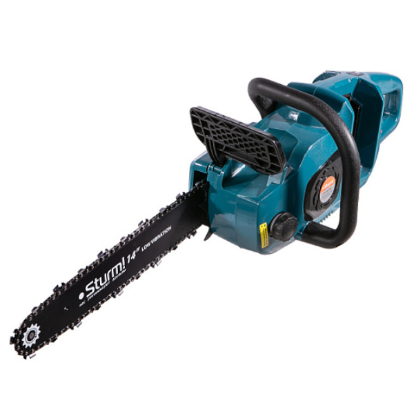 Пила цепная аккумуляторная 1BatterySystem CRS3614BL (без ЗУ и АКБ) Sturm прекрасно справится с обрезкой веток деревьев, спиливанием деревьев и простыми столярными работами. Благодаря использованию двух аккумуляторов 1BatterySystem 18 В достигается высокая мощность, а значит скорость реза и производительность. Бесщеточный двигатель уменьшает вес и габариты инструмента, увеличивает мощность, продолжительность работы и ресурс. Плавный пуск позволяет избежать стартового рывка повышая безопасность пользователя. Два индикатора заряда позволяют контролировать заряд каждой из батарей. Система боковой натяжки цепи позволяет регулировать цепь быстро и комфортно. В данной пиле использована цепь с толщиной звена 1,1 мм - это позволило увеличить продолжительность работы на одном заряде аккумулятора на 20%