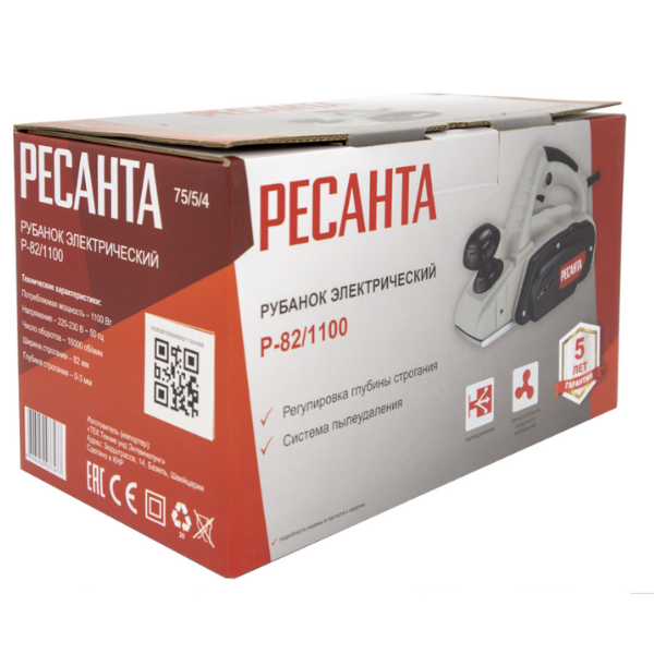 Рубанок электрический Р-82/1100 75/5/4 Ресанта применяется для строгания древесины в бытовых и производственных условиях. Рубанком можно строгать плоские поверхности и кромки (фаски). Воздушное охлаждение исключает возможность перегрева в течение работы. Модель обеспечивает направленный выброс стружки и плавное регулирование глубины строгания.
