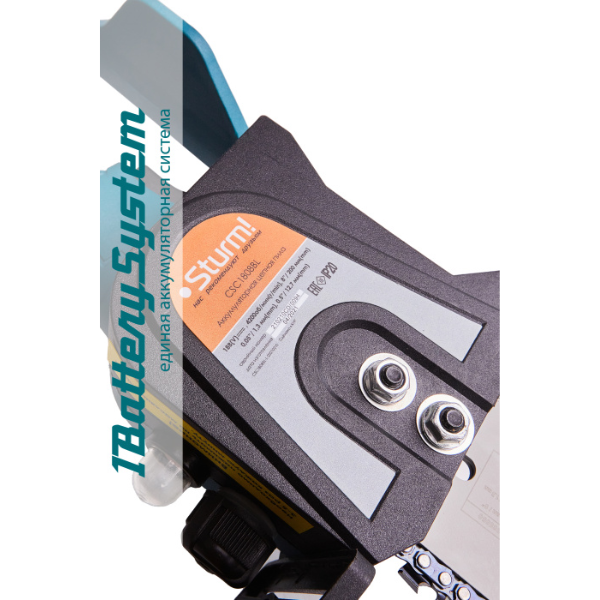 Пила цепная аккумуляторная 1BatterySystem CRS1808BL (без ЗУ и АКБ) Sturm прекрасно справится с обрезкой веток деревьев и простыми столярными работами. Насос принудительной подкачки топлива позволит шине и цепи прослужить дольше. Бесщеточный двигатель уменьшает вес и габариты инструмента, увеличивает мощность, продолжительность работы и ресурс. Благодаря небольшому весу работу можно выполнять одной рукой. Аккумуляторная цепная пила является частью системы 1BatterySystem. 1BatterySystem - универсальная аккумуляторная система. Подходит ко всей линейке аккумуляторного инструмента Sturm! Аккумуляторная цепная пила, в целях экономии, поставляется без аккумулятора и зарядного устройства. Вы можете использовать один аккумулятор данной системы для нескольких инструментов или использовать аккумулятор от шуруповерта с логотипом 1BatterySystem. Компания Sturm! гараноирует наличие в розничной сети аккумуляторов для данной аккумуляторной системы в течение, как минимум, 15 лет.