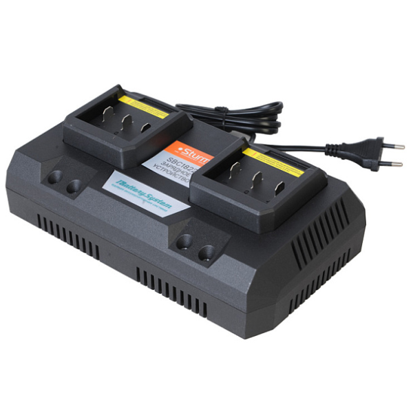 Устройство зарядное (18 В; 2х4 А) для двух батарей SBC1822 Sturm подходит ко всей линейке аккумуляторного инструмента Sturm! с логотипом 1BatterySystem.