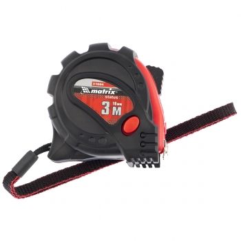 Рулетка 3 м х 16мм Status magnet 3 fixations, обрезиненный корпус, зацеп с магнитом MATRIX