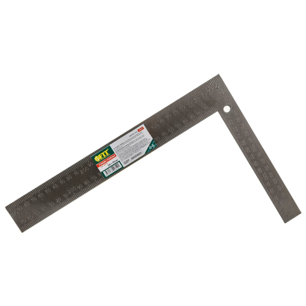 Угольник 200 х 300мм цельно-металлический рифленая шкала 19632 FIT с двойной разметкой.
