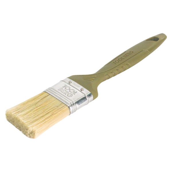 Кисть плоская "Микс-стандарт" смеш.щетина, пласт.рукоятка 38мм TOOLBERG применяется для нанесения на различные поверхности средств деревозащиты, лазурей, пропиток, антисептиков, грунтовок.