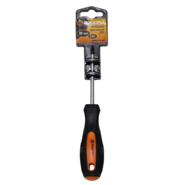 Отвертка крестовая PZ1 80 мм 73/6/2/4 Вихрь используется для монтажа и демонтажа резьбовых соединений крестовой формы. Стержень из хромованадиевой стали (CrV), полностью закален и имеет хромоникелевое покрытие. Наконечник намагничен. Рукоятка эргономичной формы с отверстием для подвески, изготовлена из противоскользящего материала - двухкомпонентного пластика