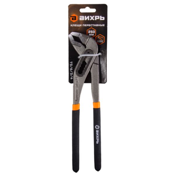Клещи переставные 250мм обливные рукоятки 73/6/3/4 Вихрь применяются для захвата разнообразных по форме и размерам предметов, могут использоваться в качестве трубного или разводного ключа. Наличие нескольких ступеней раскрытия губок обеспечивает минимальные усилия для сжатия. Изготовлены из углеродистой стали. Обливные рукоятки удобны для хвата. Мощная и надёжная фиксация.