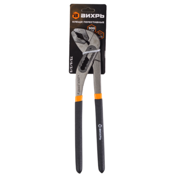 Клещи переставные 300мм обливные рукоятки 73/6/3/5 Вихрь применяются для захвата разнообразных по форме и размерам предметов, могут использоваться в качестве трубного или разводного ключа. Наличие нескольких ступеней раскрытия губок обеспечивает минимальные усилия для сжатия. Изготовлены из углеродистой стали. Обливные рукоятки удобны для хвата. Мощная и надёжная фиксация.
