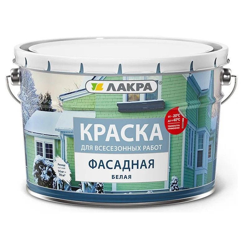 Фасадная всесезонная краска Лакра используется для внутренних и наружных работ. Подойдет для нанесения на стены производственных и складских помещений. Допустимый диапазон эксплуатационных температур от -50° до +50°С. Обеспечивает устойчивость к износу и защиту поверхностей от неблагоприятных воздействий окружающей среды. Краска может наносится без предварительного грунтования.