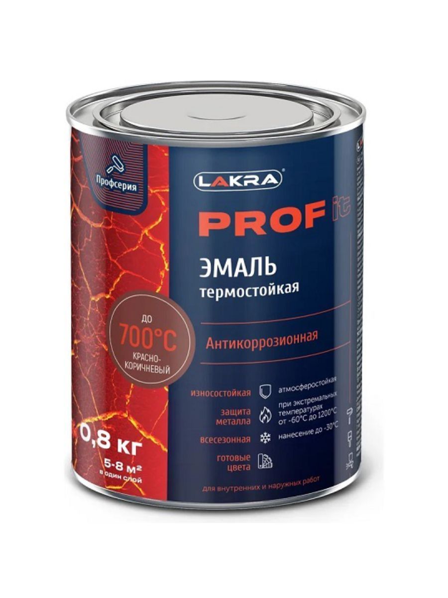 9590256 Эмаль термостойкая антикоррозионная Лакра PROF IT до 700С Красно-коричневый 0,8 кг