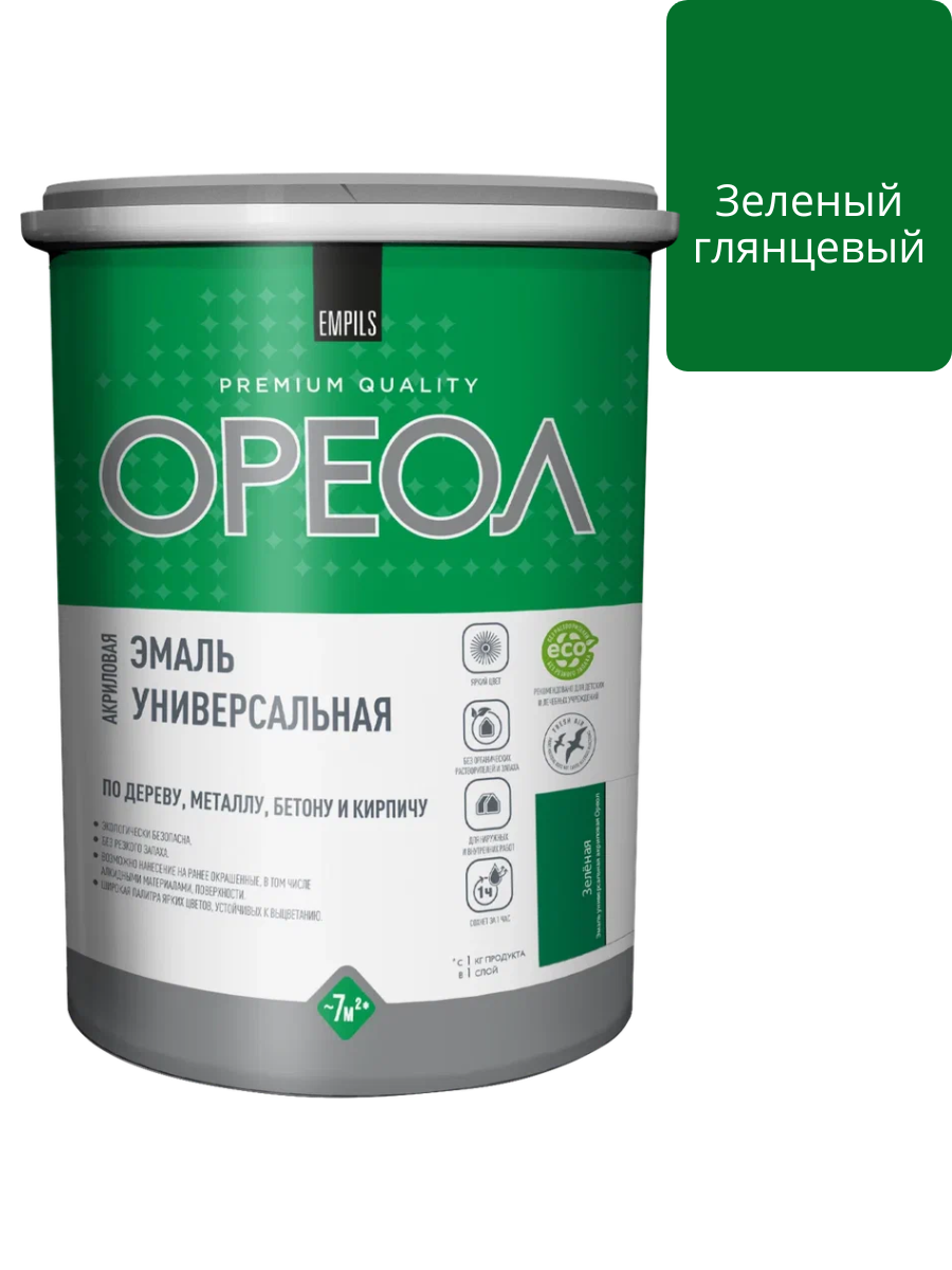 Эмаль акриловая универсальная зелёная 1кг глянцевая ОРЕОЛ *6