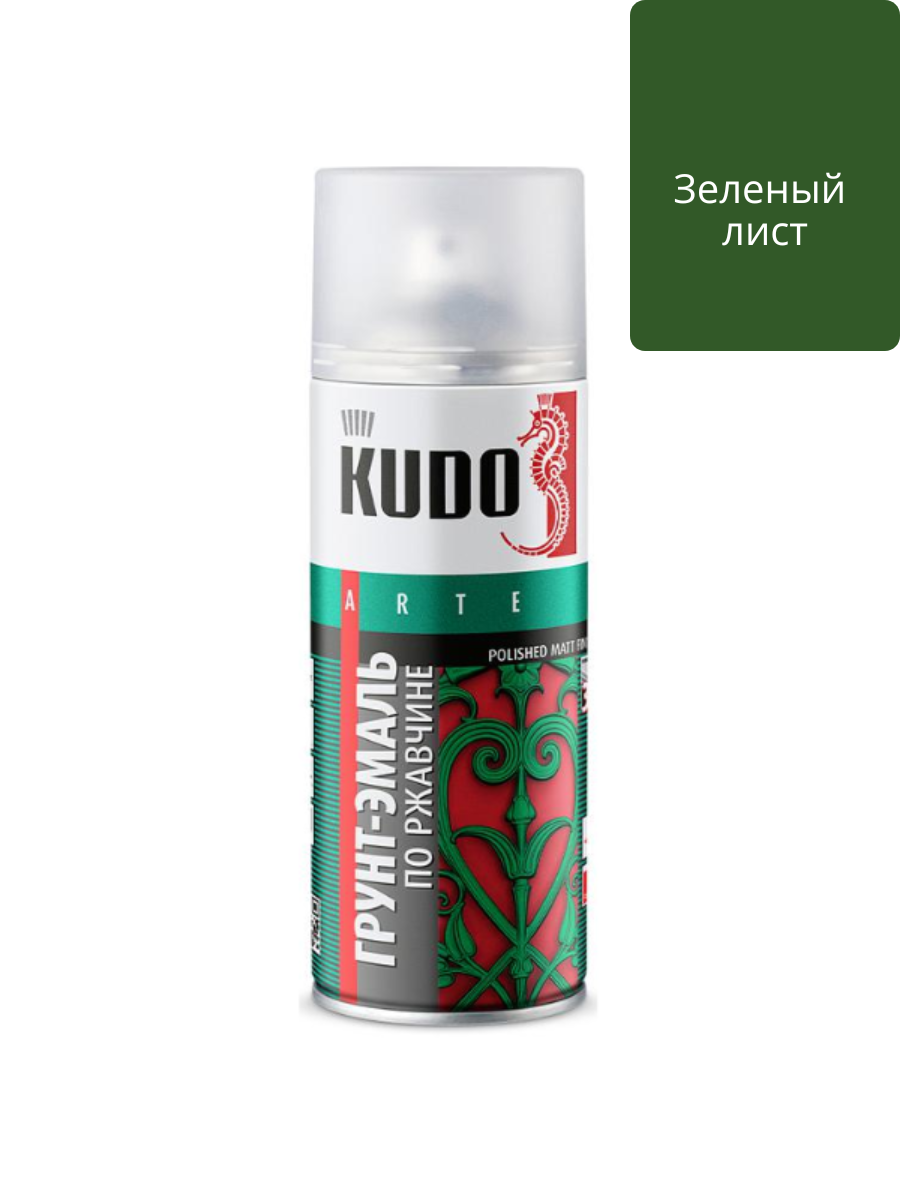 Грунт-эмаль по ржавчине зеленая 520мл KU-316002 KUDO применяется для окрашивания изделий из сплавов чёрных металлов, подверженных коррозии и уже заржавевших. Благодаря сочетанию свойств нейтрализатора коррозии, грунта и декоративной эмали (3 в 1) позволяет значительно сократить время, необходимое для получения защитного покрытия. Грунт-эмаль обладает хорошей укрывистостью, превосходной адгезией и атмосферостойкостью, обеспечивает долговременную защиту окрашенной поверхности и высокие декоративные свойства. Грунт-эмаль гладкая матовая по ржавчине в баллончике легко наносится на труднодоступные места. Применяется для наружных и внутренних работ.
