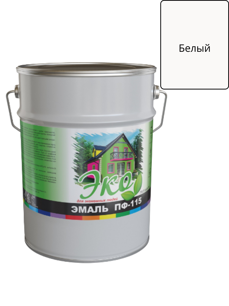Эмаль ПФ-115 Белая 5кг ЭКО на основе алкидного лака применяется для окраски деревянных, металлических, бетонных, цементных и других поверхностей подвергающихся атмосферным воздействиям, а также для внутренних отделочных работ: окраски оконных рам, подоконников, дверей, батарей, различных деревянных и металлических предметов.