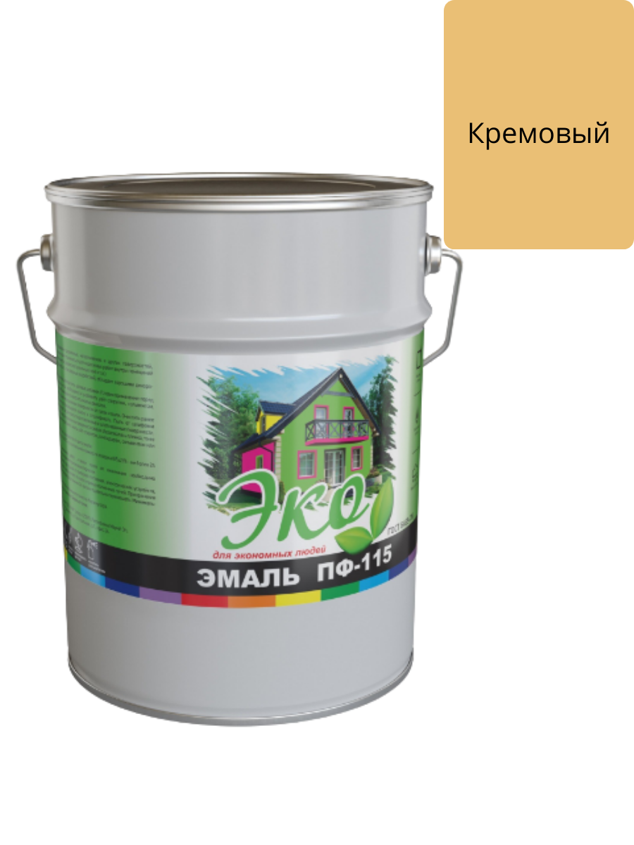 Эмаль ПФ-115 Кремовая 5кг ЭКО на основе алкидного лака применяется для окраски деревянных, металлических, бетонных, цементных и других поверхностей подвергающихся атмосферным воздействиям, а также для внутренних отделочных работ: окраски оконных рам, подоконников, дверей, батарей, различных деревянных и металлических предметов.