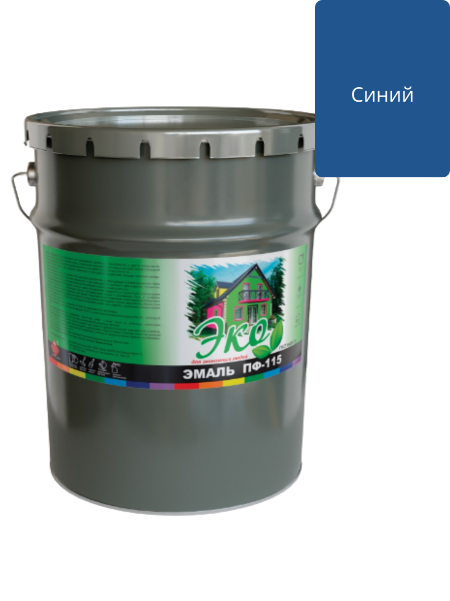 Эмаль ПФ-115 Синяя 20кг ЭКО на основе алкидного лака применяется для окраски деревянных, металлических, бетонных, цементных и других поверхностей подвергающихся атмосферным воздействиям, а также для внутренних отделочных работ: окраски оконных рам, подоконников, дверей, батарей, различных деревянных и металлических предметов.