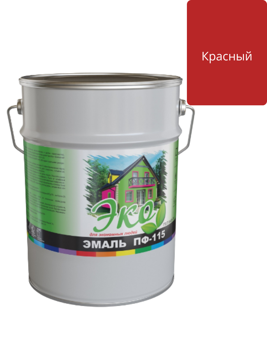 Эмаль ПФ-115 Красная 5кг ЭКО на основе алкидного лака применяется для окраски деревянных, металлических, бетонных, цементных и других поверхностей подвергающихся атмосферным воздействиям, а также для внутренних отделочных работ: окраски оконных рам, подоконников, дверей, батарей, различных деревянных и металлических предметов.