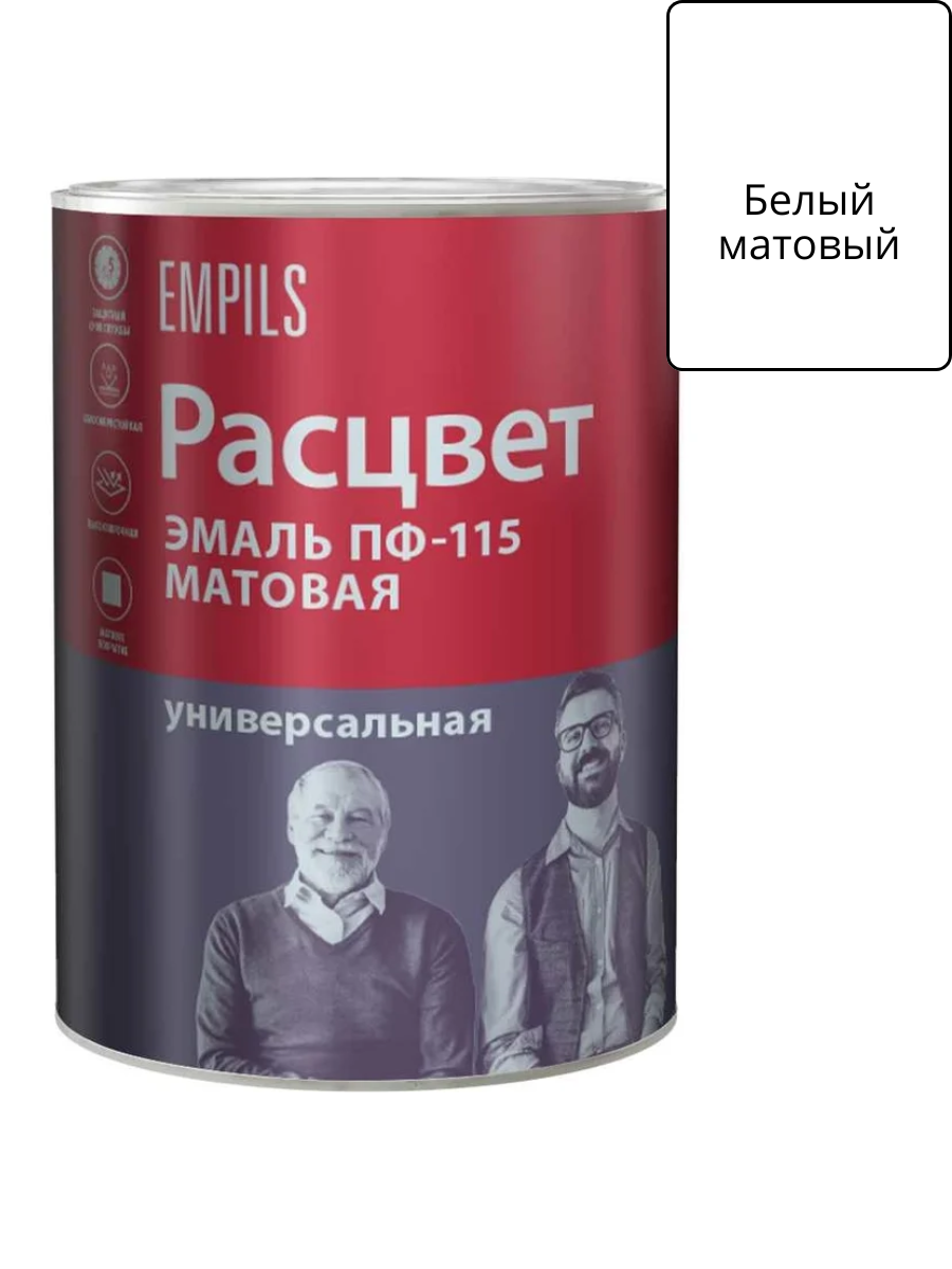 Эмаль универсальная ПФ-115 матовая Расцвет белая 0.9 кг