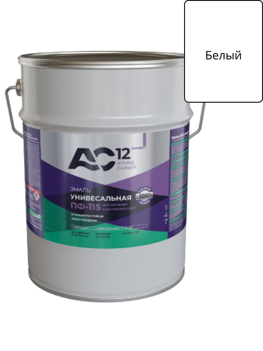 Эмаль ПФ-115 Белая 5кг АС12 готова к применению, защищает поверхность от атмосферных воздействий и придает декоративный вид.
