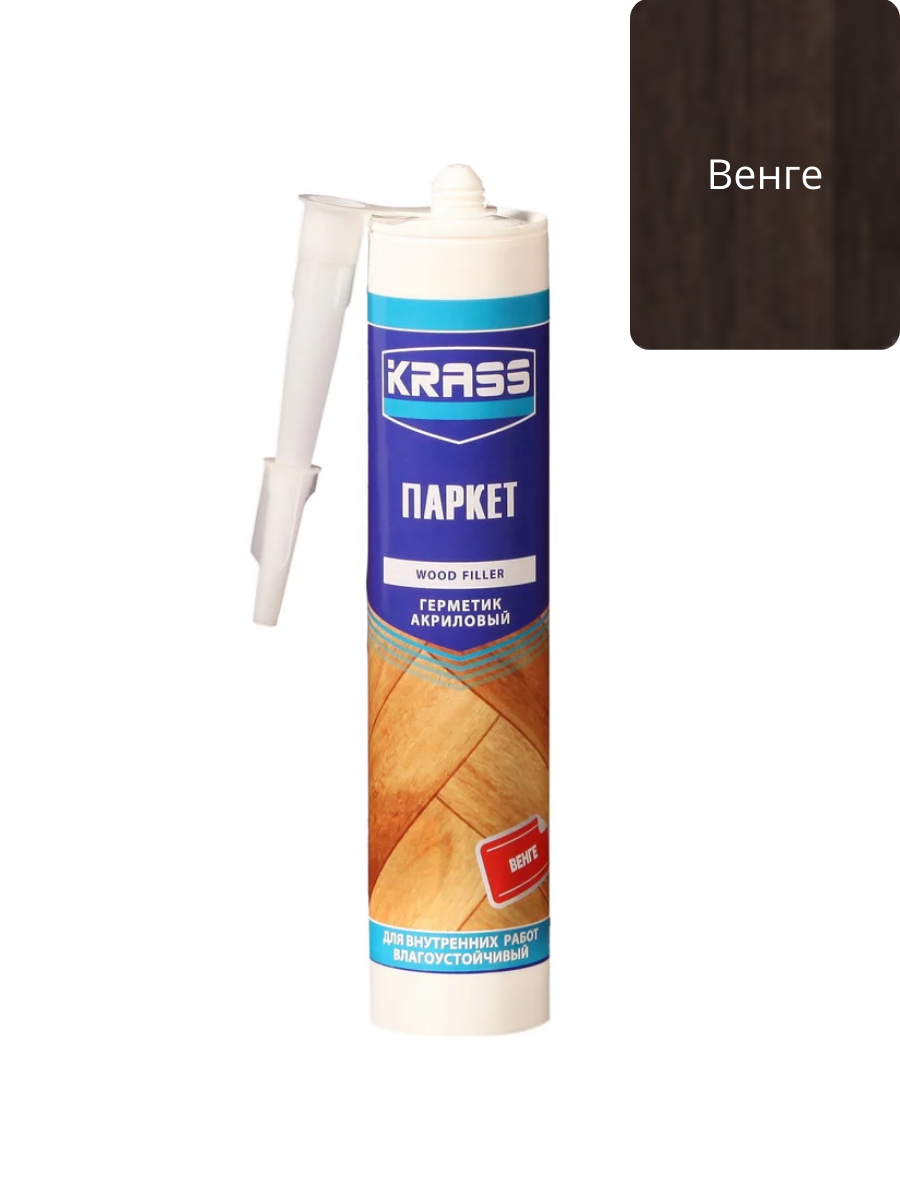 Герметик акриловый по дереву венге 300мл KRASS применяется для заделки и уплотнения соединений, щелей, зазоров в паркете, плинтусах, деревянном полу, стенах и других конструкциях, а также для уплотнения оконных и дверных рам с внутренней стороны. Герметик обладает превосходной адгезией ко всем типам деревянных поверхностей.