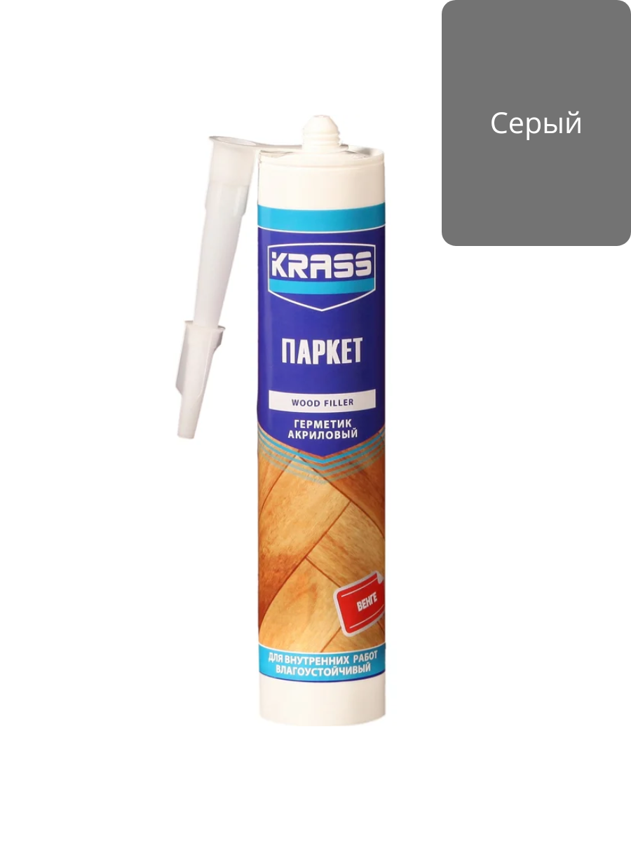 Герметик акриловый по дереву серый 300мл KRASS применяется для заделки и уплотнения соединений, щелей, зазоров в паркете, плинтусах, деревянном полу, стенах и других конструкциях, а также для уплотнения оконных и дверных рам с внутренней стороны. Герметик обладает превосходной адгезией ко всем типам деревянных поверхностей.