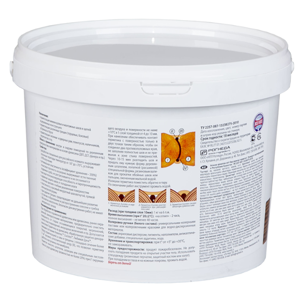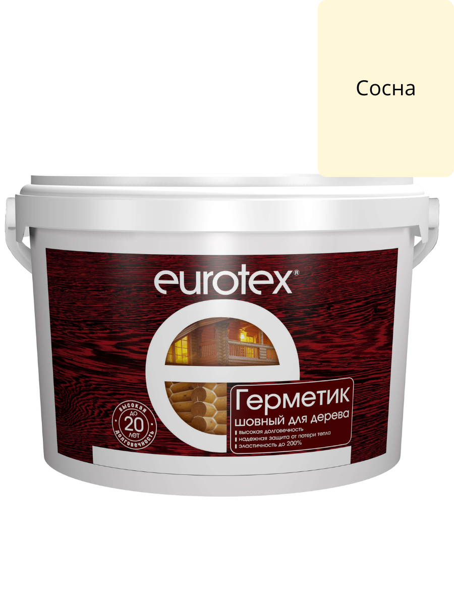 Герметик акриловый для дерева сосна 3кг EUROTEX применяется внутри и снаружи помещений по деревянным поверхностям и материалам на основе древесины (ДВП, ДСП, фанера и др.). Допускается использование для герметизации стыков сборных бетонных, газобетонных и кирпичных конструкций при соблюдении технологии нанесения. Используется для герметизации межвенцовых и монтажных швов и щелей в различных деревянных конструкциях, герметизации различных трещин (торцевых, боковых) в бревнах и брусе, герметизации оконных и дверных рам, плинтусов, наличников, переплетов и пр.