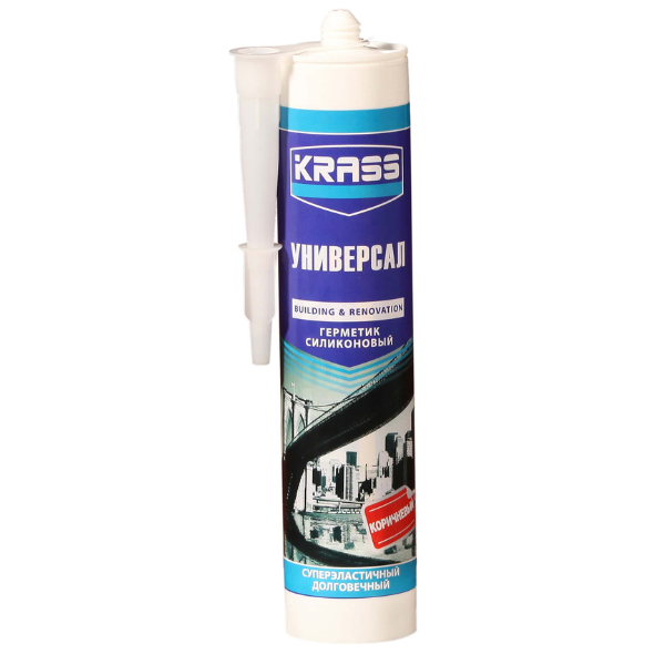 Герметик силиконовый универсальный 300мл коричневый KRASS применяется для заполнения щелей между строительными материалами и элементами отделки при внутренних и наружных работах в строительстве, автомобильной и судостроительной промышленности. Используется для работ по остеклению (теплицы, лоджии, балконы, витрины, зимние сады, световые табло и щиты), а также для изоляции электрической проводки. Герметик обладает превосходной адгезией к стеклу, дереву, керамике, эмали, пластикам. Герметик универсальный выдерживает большие деформации шва и даёт минимальную усадку шва, который не темнеет со временем, устойчив к атмосферным воздействиям, UV лучам и воздействию средств очистки. Удобно наносится, не растекается, быстро высыхает и обладает высокой эластичностью после затвердения.