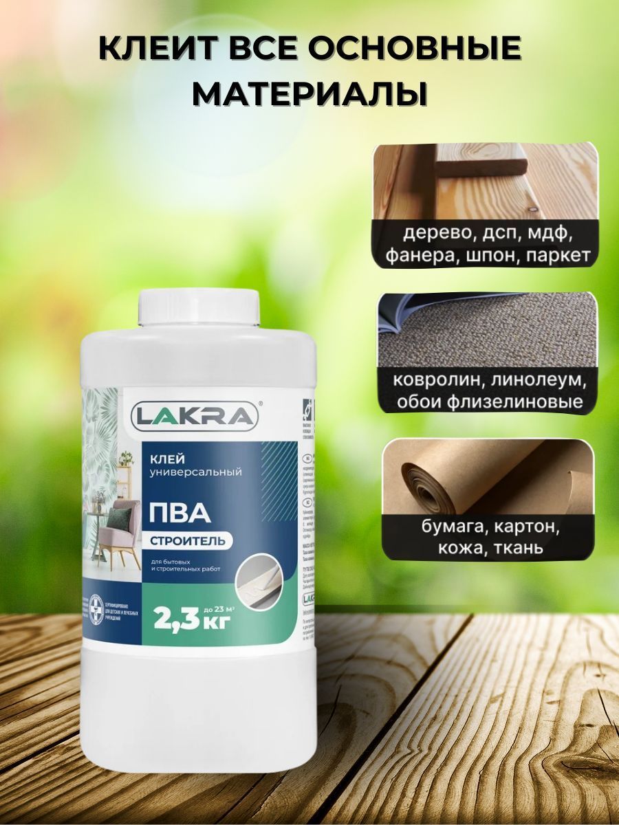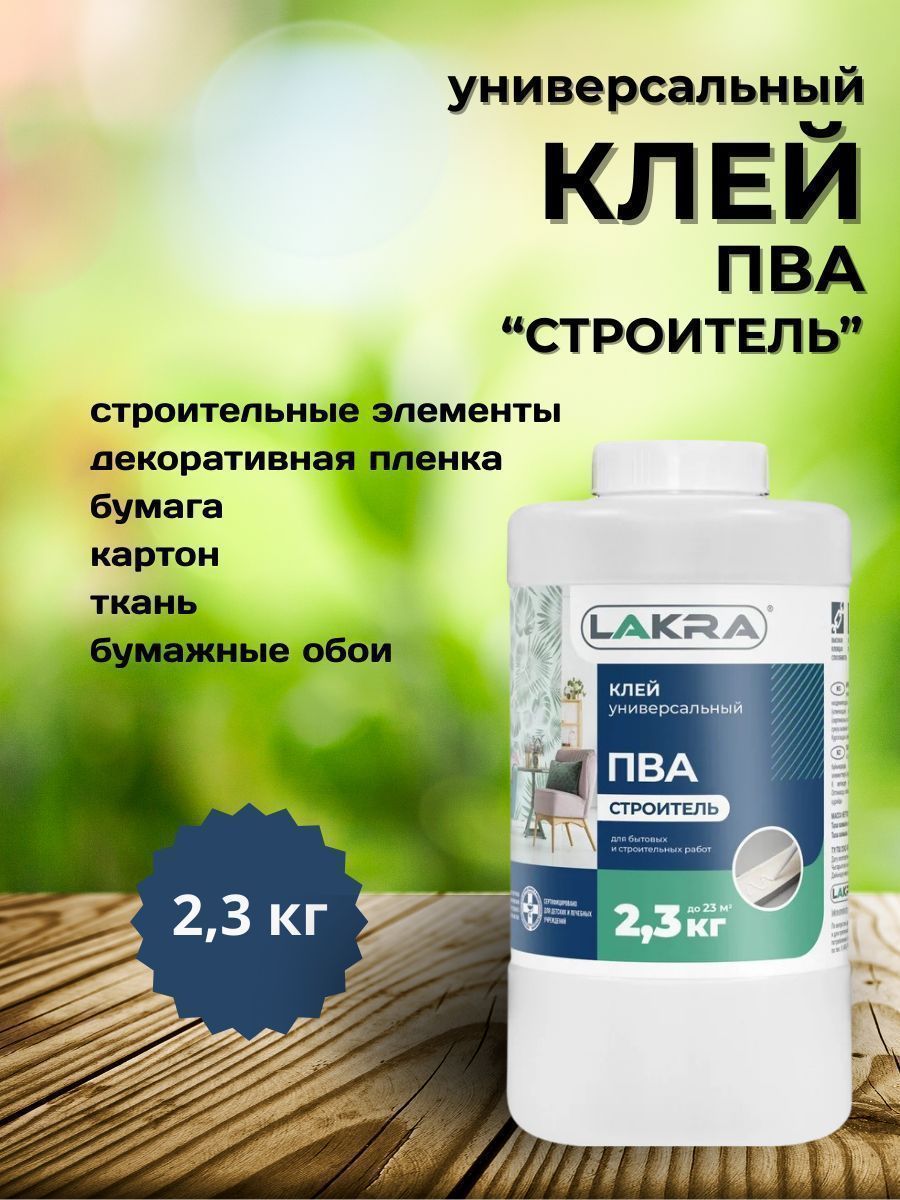 Клей ПВА «Строитель» универсальный это высококачественный клей на основе водной дисперсии ПВА, который обладает высокой прочностью склеивания и оптимальным временем схватывания. После высыхания образует эластичную прозрачную пленку. Применяется для следующих видов работ: приклеивания изделий из картона, бумаги, тканей, декоративной пленки (клеенки) на бумажной и полимерной основе, строительных элементов (серпянки и т.д.), подклейки бумажных обоев и т.п..
