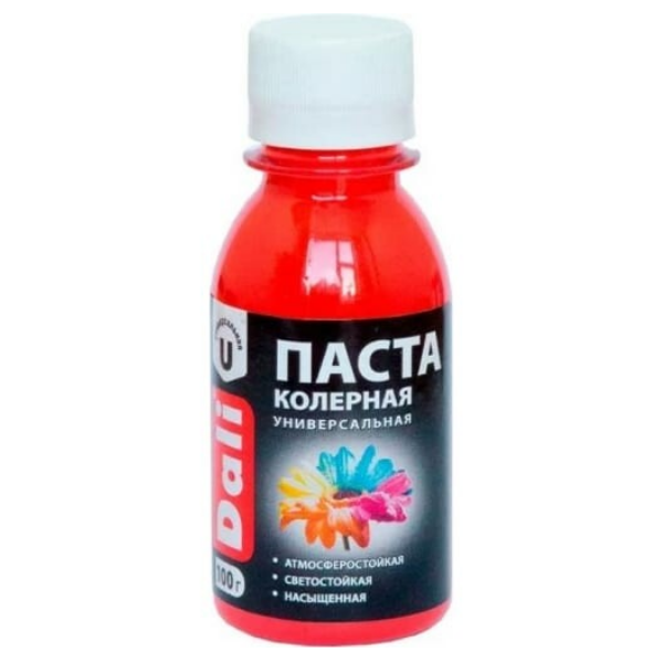 Паста колерная универсальная 0,1кг розовый DALI применяется для тонирования строительных и декоративных материалов (водно-дисперсионных, алкидных, масляных). Колер Dali атмосферостойкий, выдерживает сезонные колебания температур от -40 до +40°С, светостойкий (6-8 баллов), устойчив к выгоранию, не разрушается под воздействием УФ-лучей. Отличается высокими показателями адгезии к разным видам оснований. Позволяет получить широкую гамму оттенков различной насыщенности.
