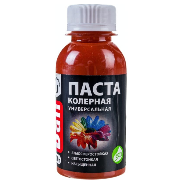 Паста колерная универсальная 0,1кг шиповник DALI применяется для тонирования строительных и декоративных материалов (водно-дисперсионных, алкидных, масляных). Колер Dali атмосферостойкий, выдерживает сезонные колебания температур от -40 до +40°С, светостойкий (6-8 баллов), устойчив к выгоранию, не разрушается под воздействием УФ-лучей. Отличается высокими показателями адгезии к разным видам оснований. Позволяет получить широкую гамму оттенков различной насыщенности.