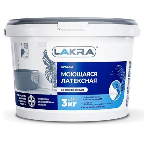 8306485 Краска моющаяся латексная Лакра белоснежная 3кг