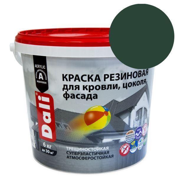 "DALI" краска резиновая для кровли цоколя, фасада, зеленый - 6кг